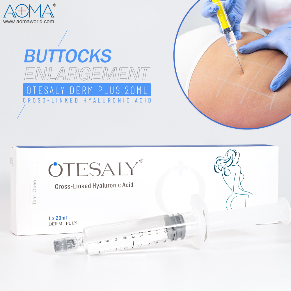 Nuestra inyección para glúteos y senos Derm Plus de 20 ml cumple estrictamente con los estándares de dispositivos médicos CE y FDA. Como una de las primeras diez empresas del mundo en producir productos de gel de hialuronato de sodio, Guangzhou Aoma Biotechnology Co., Ltd. ha brindado servicios de procesamiento de productos para 453 marcas en todo el mundo con su rica experiencia, y el ciclo de producción OEM es de solo 2 a 3 semanas.