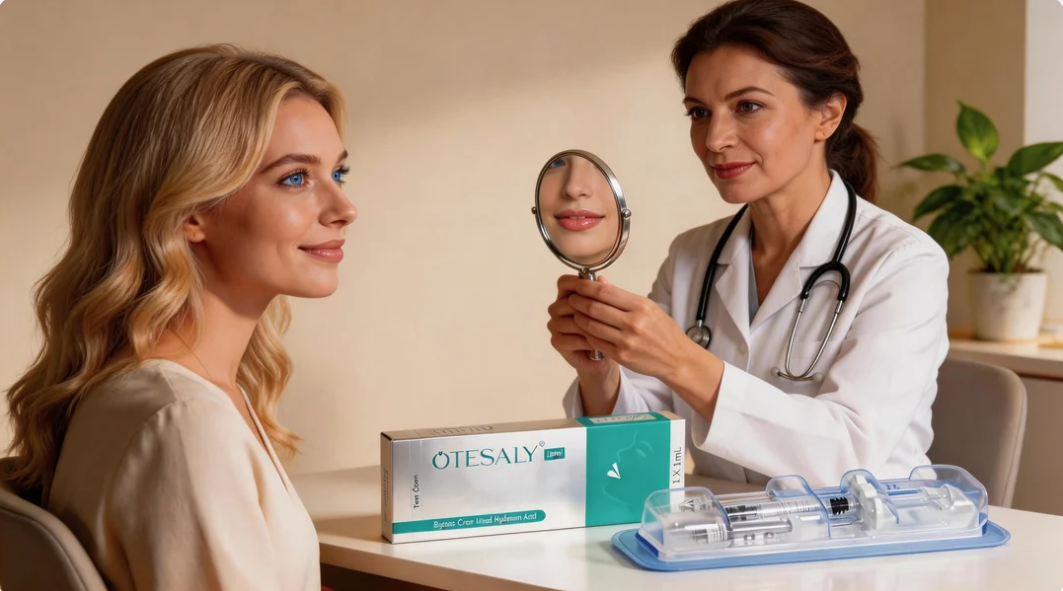 Después de una comunicación detallada, el médico formuló un plan personalizado por etapas para Emilia. El producto principal seleccionado fue OTESALY Lipfill 1ml , que es un relleno de ácido hialurónico de doble reticulación especialmente diseñado para dar forma precisa a los labios.